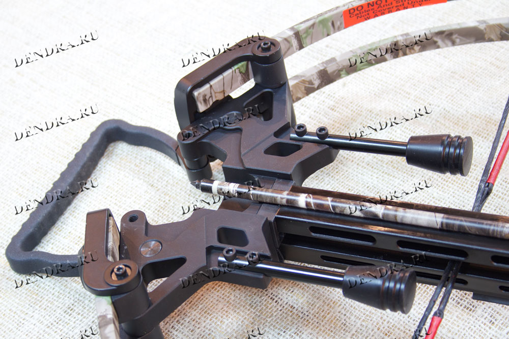 Цвет зеленого камуфляжа удобен в условиях маскировки на охоте. Красные вставки на съемном цевье придают привлекательности дизайну и делают арбалет узнаваемым с первого взгляда.