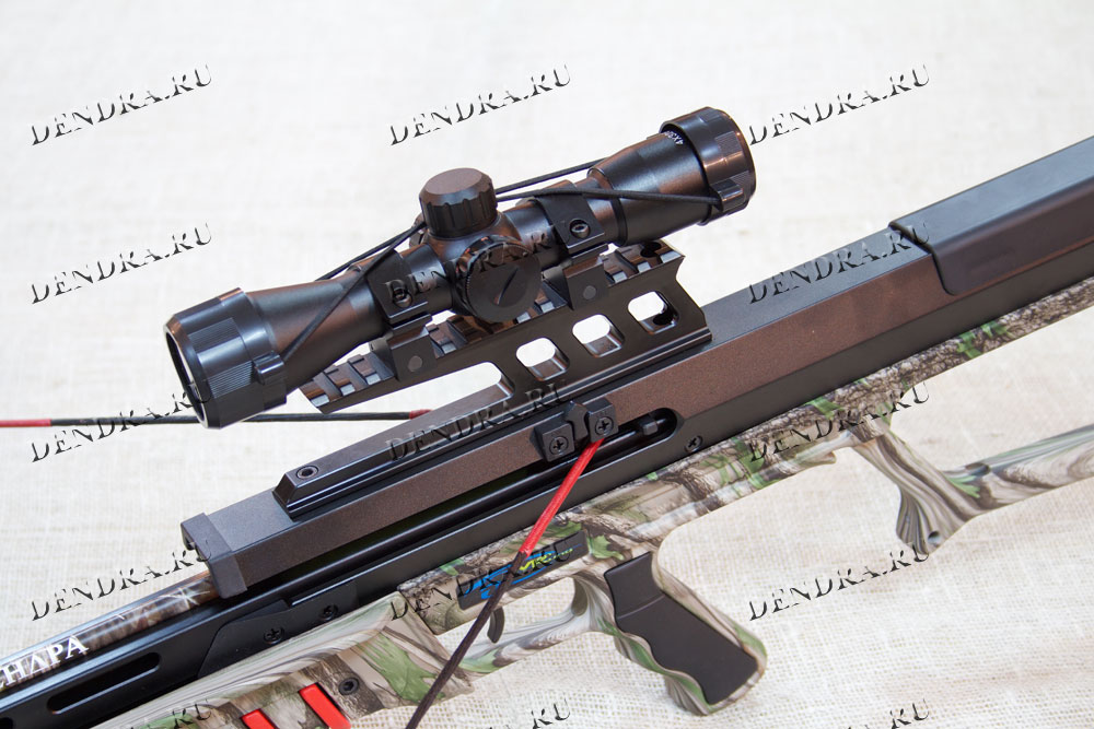 Прицел 4х32 с подсветкой и возможностью смены цвета маркера с красного на зеленый и наоборот. Для недорогого арбалета, такого как MK-400GS Бластер, такой оптический прицел можно считать, пожалуй, лучшим решением.