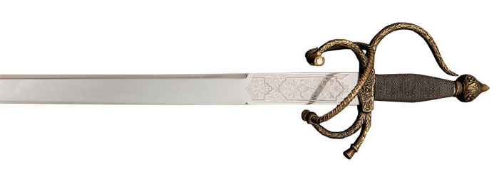 В XI веке в Испании жил смелый, отважный и красивый дворянин Родриго Диас де Вивар. Известен он больше под именем Сид, в том числе благодаря одноименному произведению Пьера Корнеля. У этого благородного человека, который стал национальным героем в своей стране, было два меча, Тизона и Колада. Купить меч Колада Сид, как и его «собрата», вы можете в нашем магазине по выгодной цене и с отправкой в любой город России.