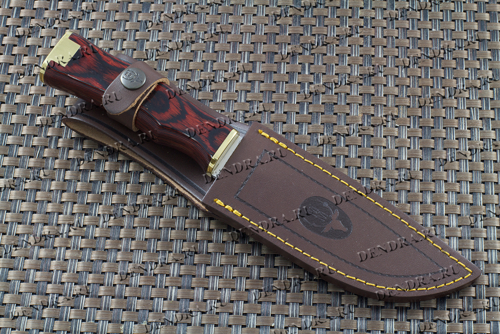Нож "RANGER" с фикс клинком длиной 13 см, рукоять красная микарта, ножны кожа