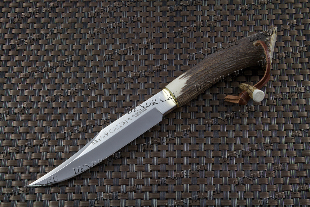 Нож "CAZ" с фикс клинком длиной 16 см, рукоять рог оленя с кроной, ножны кожа