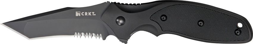 По форме это складной нож танто в популярном американском варианте. Обух плавно переходит в спуск к острию, которое находится на оси удара, что обеспечивает хорошие колющие качества. Неширокое полотно резко обрывается выраженными ребрами в вогнутые спуски к лезвию. Режущая кромка имеет стамесочную заточку и ближе к небольшой пятке переходит в серрейтор. Такой универсальный нож весьма популярен среди охотников и представителей экстремальных профессий.