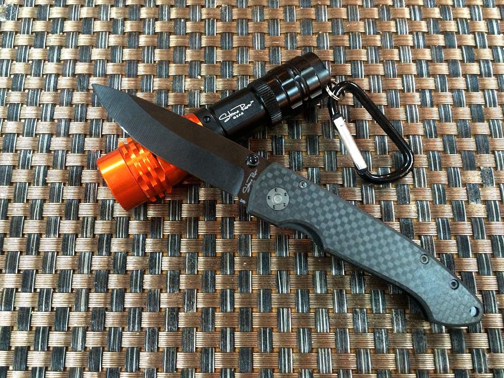 Подарочный набор из двух предметов: нож складной артикула SRG2CFL; карманный фонарь артикула SRG1TAF