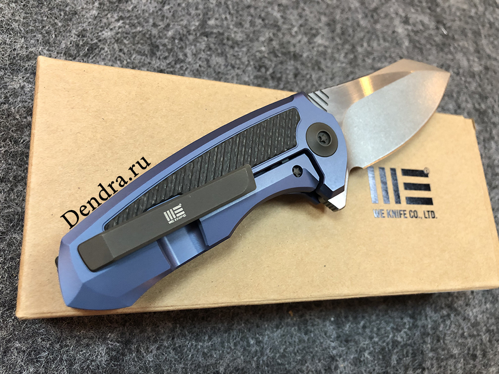 Нож Valiant, цвет синий с серым, сталь CPM-S35VN, длина клинка 75,5 мм, рукоять титан/карбон, frame-