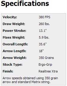 А из спецификации понятно, что такая скорость достигается не только сверхлёгкой стрелой 350 гран, в быту практически не встречающейся, а ещё и диким усилием на плечах в 260 фунтов (около 118 кг)!