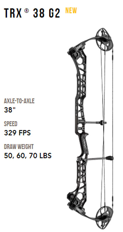 TRX 34 - идеальный средний размер для соревнований и охоты с межосевым расстоянием 34 дюйма и базой 6,5 дюйма. Вообще, очень многие стрелки хотят иметь компактный именно спортивный лук, с возможностью применить его как в спорте Таргет или 3D, так и на ответственной охоте. Если перевести на автомобили, то это кроссовер, а они очень востребованы. MATHEWS TRX38G2 наоборот, предоставляет собой узко отточенную спортивную модель со всеми преимуществами длинного лука, как высокая устойчивость и лучшая стабильность. База у него 7", что придаёт ещё больше уверенности в точности выстрела, ибо чем больше база, тем больше лук прощает ошибки стрелка.