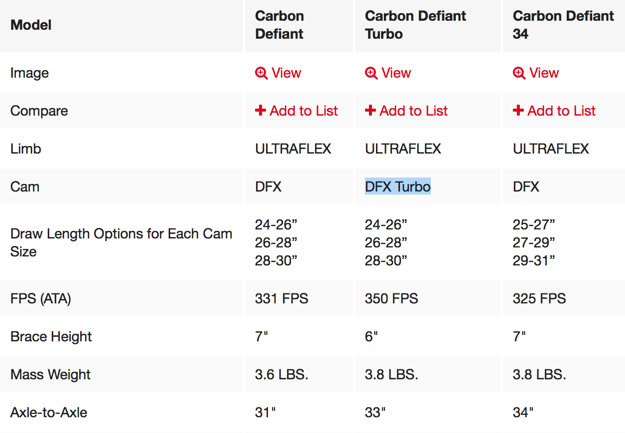 CARBON Air оснащён высокопроизводительными блоками от нашумевшего Premonition HD. Вкупе с кастомными тросами и тетивой этот лук способен разогнать стрелу до 340 ф/сек и, как показывает практика, на деле выдать ещё больший результат. Новый Defiant от HOYTHOYT и их новая разработка луков серии Carbon Defiant, похоже, ответят нам на вопрос: как сделать то же самое, что и было до этого, но в новом модельном году. А это очень просто. Defiant не сильно отличается от предыдущих карбоновых Хойтов, но всё же предлагает покупателю хорошие скорости, качество и бренд.