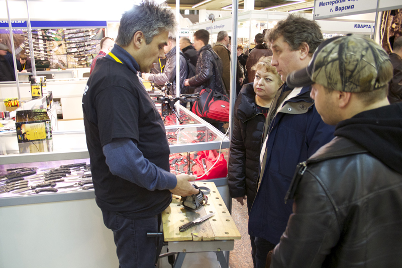 Среди представленных направлений на выставке были луки, арбалеты и комплектующие к ним, а также многообразные линейки ножей и инструментов.