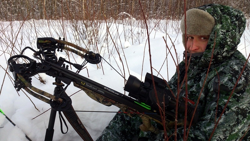 Мы выдвинулись на кромку поля, где уже неделю для нас велась прикормка оленей. Примерно в тридцати метрах от места прикормки мы расположились в яме, скрывшись за снежным бугром и порослью. ![]() Нам надо было отстрелить шильника - оленя этого года с рогами прямыми, как шило. Мы уже имели неудачный опыт общения с этими рогатыми, поэтому взяли одни из самых скоростных арбалетов - Один из арбалетов был заряжен лёгкой стрелой EASTON Flatline, что позволило развить довольно высокую скорость и надеяться, что реакции оленя на выстрел не хватит, чтобы уйти от надёжного попадания в убойную зону. Из-за того что был риск выхода кабанов на кормушку, второй арбалет был заряжен тяжёлой стрелой EASTON FMJ, чтобы обеспечить надёжное пробитие любой «бронированной пятаковидной» цели. Погода отличная! Сначала было солнышко, минус 7 градусов и слабый ветер в лицо - мы сели с подветренной стороны. ![]() Прошёл час. Смеркалось… Температура пошла вниз. Уже через пару часов засидки на стрелах и стволах арбалетов появился иней, ещё через некоторое время инеем покрылись и прицелы. Далее начали замерзать и мы, - не рассчитывая на такой мороз, оделись довольно легко. Через три часа, решив, что животные, несмотря на два ведра морковки, так и не выйдут из леса, мы прекратили охоту.