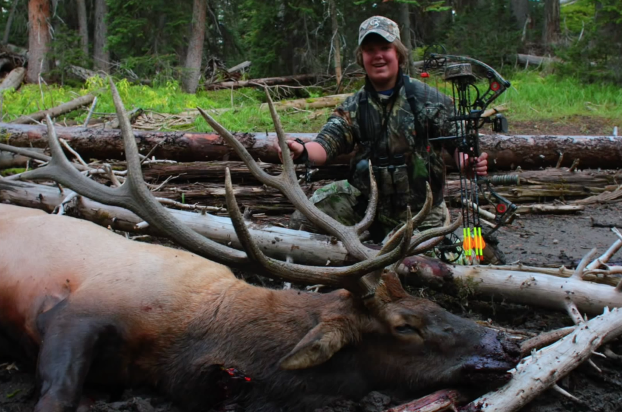 На что способен лук Mathews switchback! Огромный олень был повержен сорокафунтовым луком в руках подростка!!