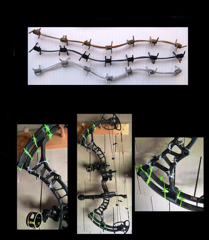 Шумоподавитель Outdoor Prostaff Wire Wrap, стал одним из необычных аксессуаров для стрельбы, сделанный из резины в виде колючей проволоки. Не даром их пробуют на очень "звонком" луке от BOWTECH - они хорошо справляются со своей задачей, снижая громкий звук выстрела до нормального. Выпускаются в разных цветах.